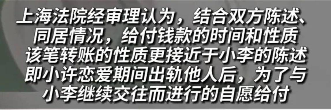 纠纷最终闹上法庭。法院经审理认为,这30万元不属于法律意义上的赠与,而是小徐为了挽回关系而自愿支付的。两人继续交往两年后分手,小徐无权要求小李退还钱。这个判决无疑给了小徐一个打击。